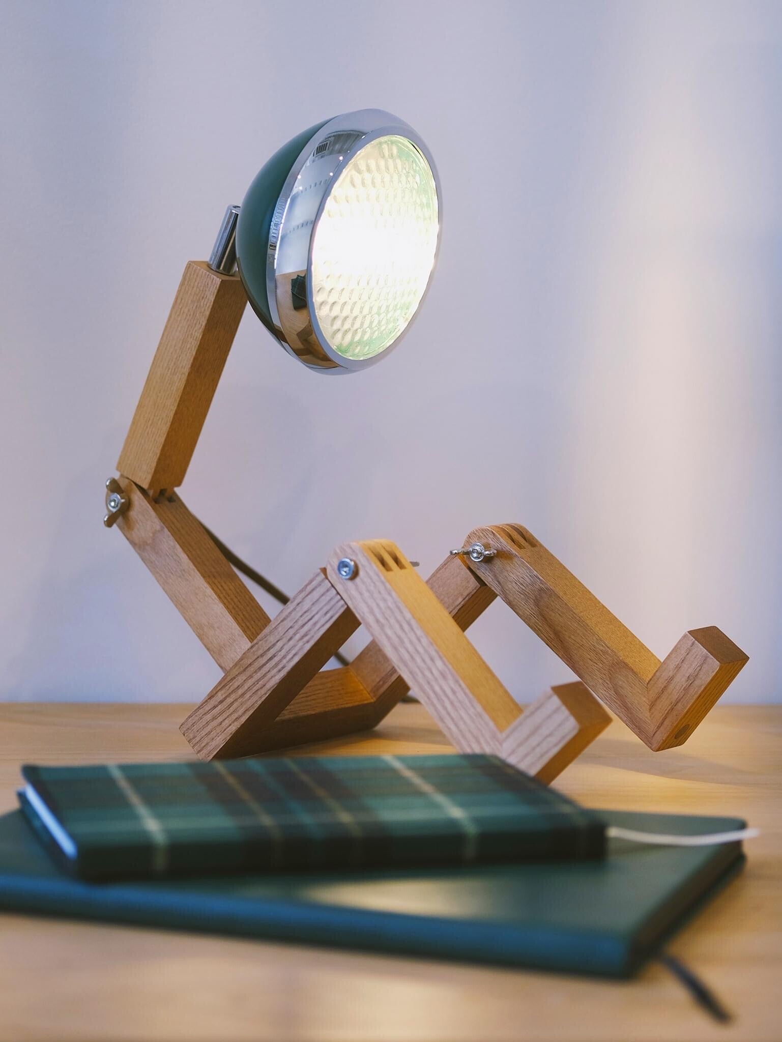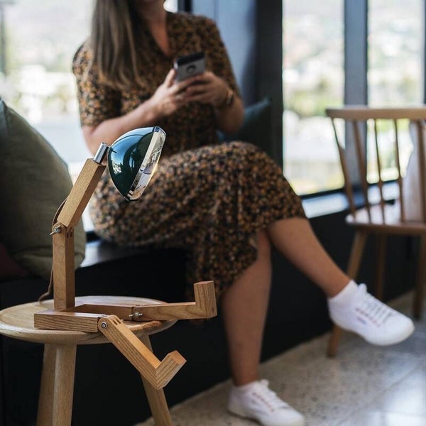 DARK GREEN Material: Ash Wood | Aluminum | Metal Dimensions: W155 x D276 x H180 ~ 400mm Bulb: 3W G4 LED (incl.) Cable: 2,3M Cotton Brown