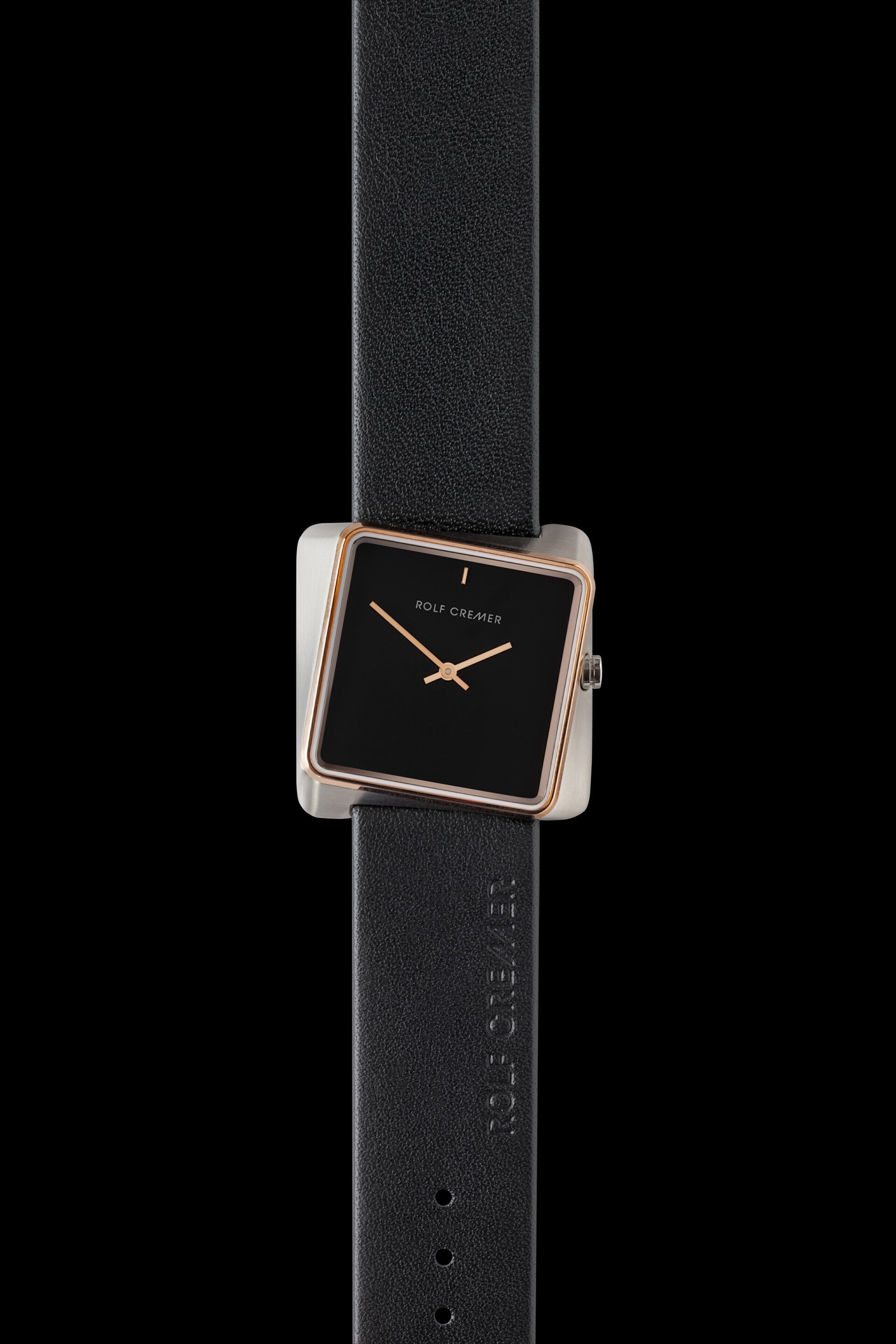 ROLF CREMER watch TWISTCASE: 35x35mm - stainless steelSTRAP: black calfs leather MOVEMENT: Swiss quartz Ronda LENS: Mineral glass WATER RESISTANCE: 3ATM / 30 meter WARRANTY: 2 years
